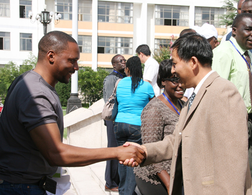 9月1日,加勒比、南太平洋地区农业技术培训班与非洲国家农业、畜牧业类教师研修班代表团一行62人来到青岛农业大学考察学习。