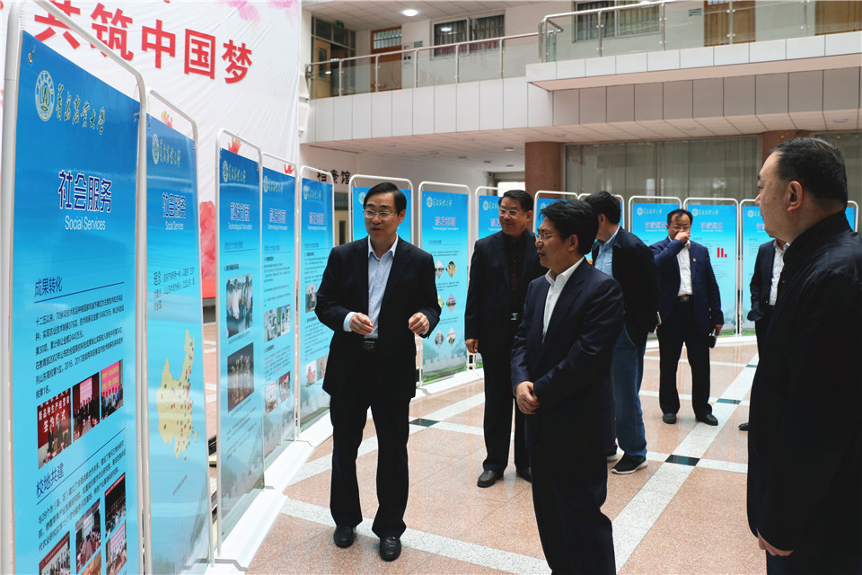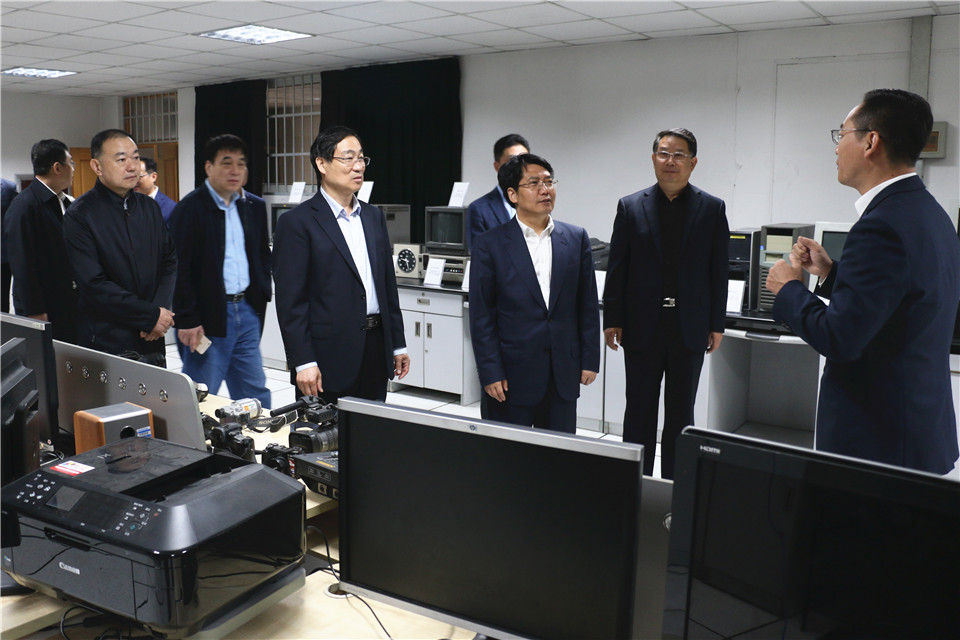 邓云锋一行先后实地查看了动漫与传媒学院、机电工程实训中心、科技楼和东苑学生宿舍。他边走边看,一边听取相关负责人的介绍,一边不时询问相关问题。在动漫与传媒学院,邓云锋实地查看了学院与英特尔公司合作的虚拟与现实研究中心,在传媒演播大厅观看了学院创作的动画片集锦和《齐民要术》动画片段,了解了学院发展和学科建设等方面的情况。在机电工程实训中心,邓云锋听取了关于学校农机装备研发以及指导学生开展课外学术科技作品竞赛的情况汇报。随后,邓云锋一行又来到科技楼,实地查看了学校科研平台建设情况,与实验室相关专家教授沟通交流,听取了他们关于各自科研进展以及成果转化情况的介绍。在东苑学生宿舍5号楼,邓云锋与宿舍同学亲切交谈,了解同学们的学习、生活情况。