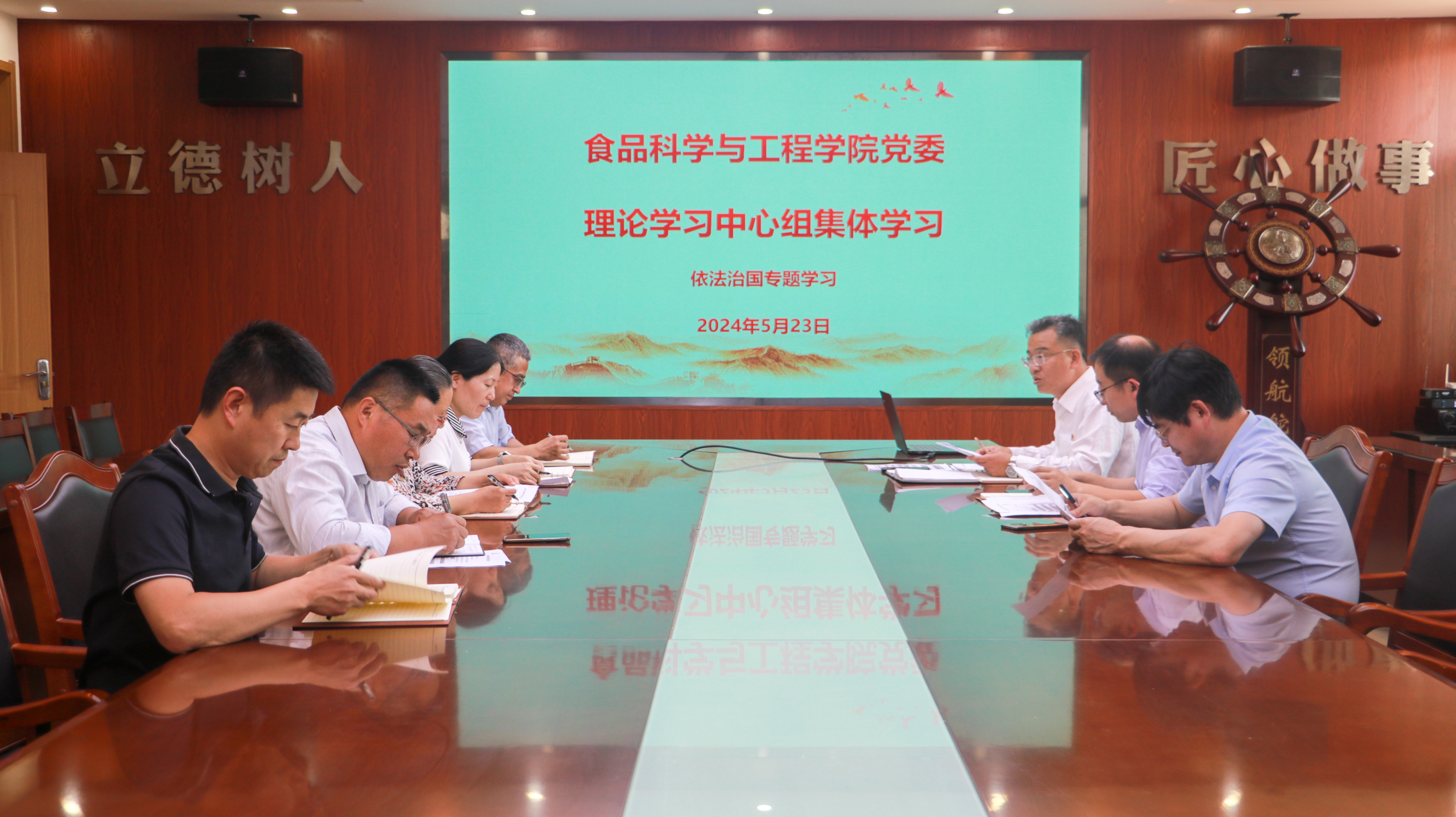 5月23日,青岛农业大学食品科学与工程学院党委理论学习中心组召开依法治国专题学习会议,重点学习《中华人民共和国民法典》有关法律知识,会议由学院党委书记车广杰主持。
